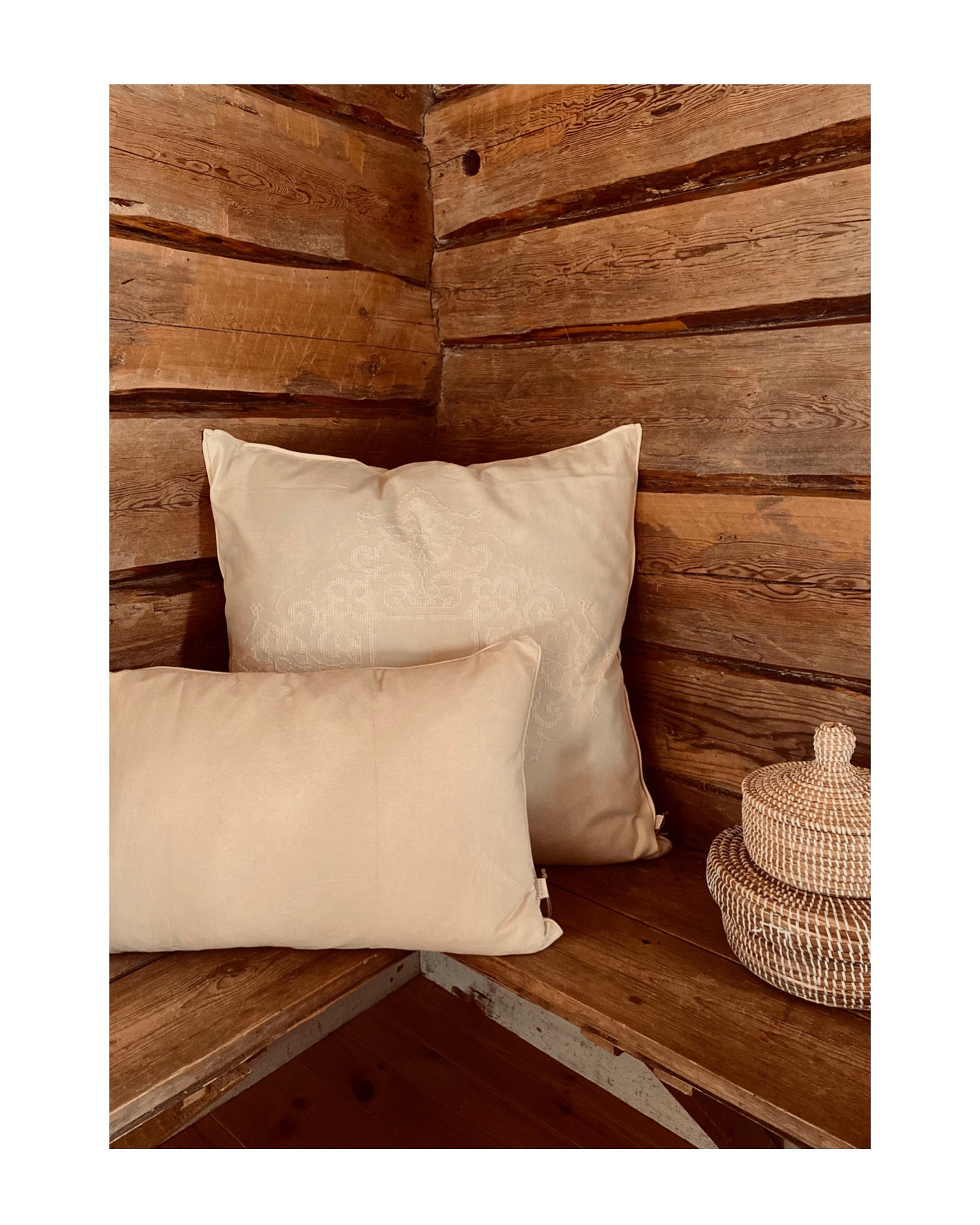 HANNA is made of hand spun and hand woven fabric called Khadi. The cross stetch mbroidery is made by hand. Measures 65 cm x 65 cm