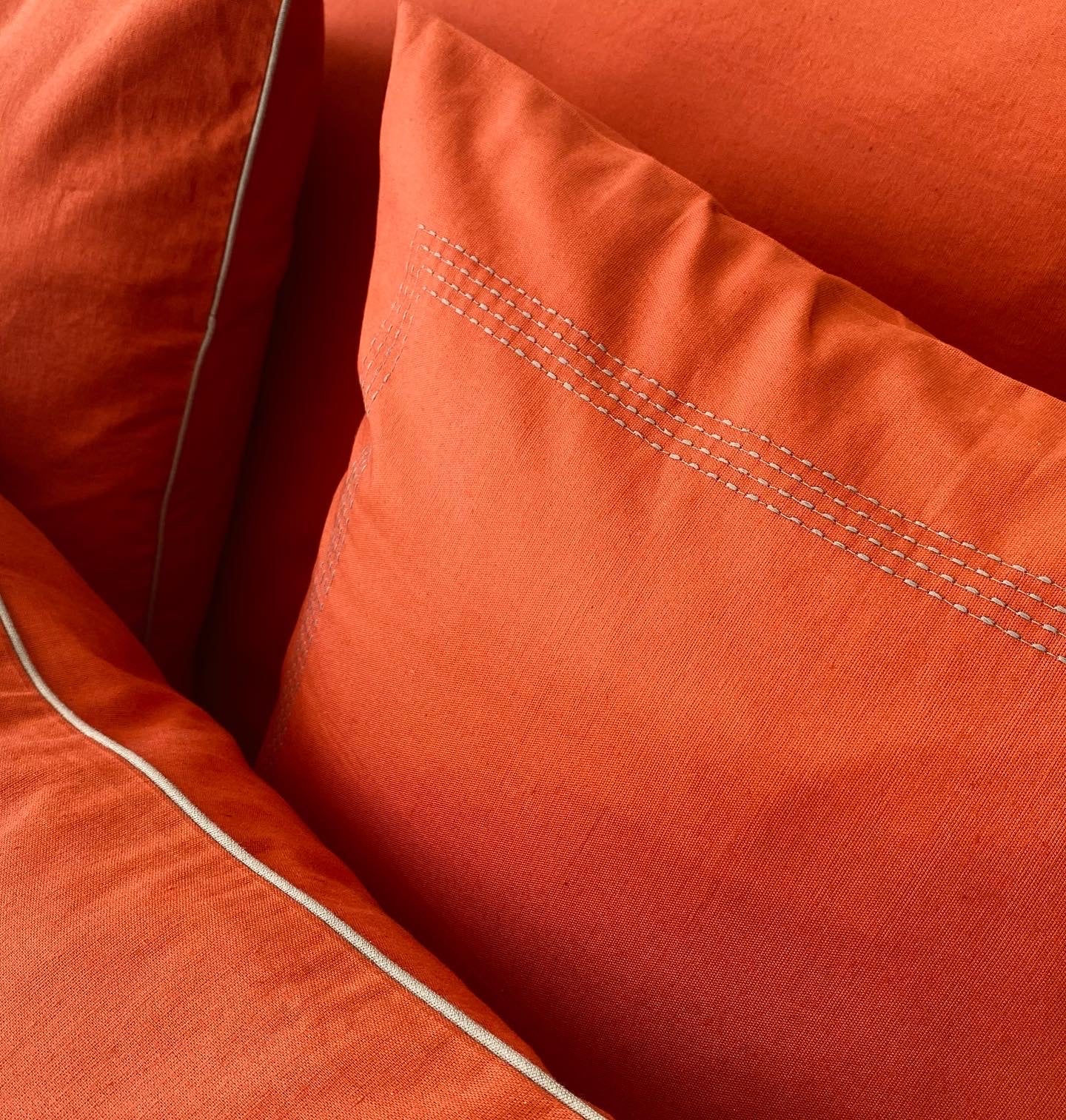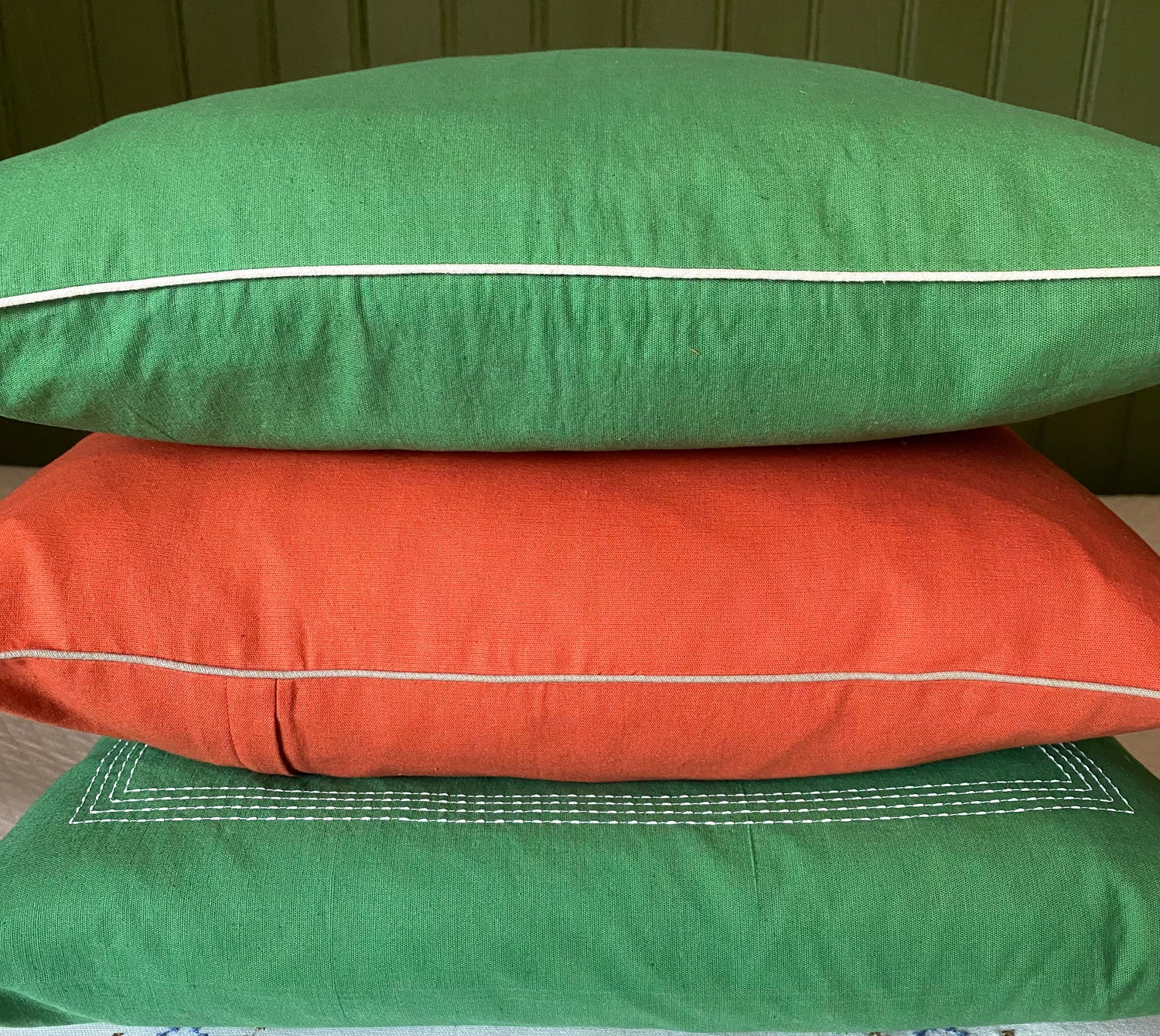 Hand embroidered cushion covers in Khadi - meaning hand spun and hand woven Indian weave.